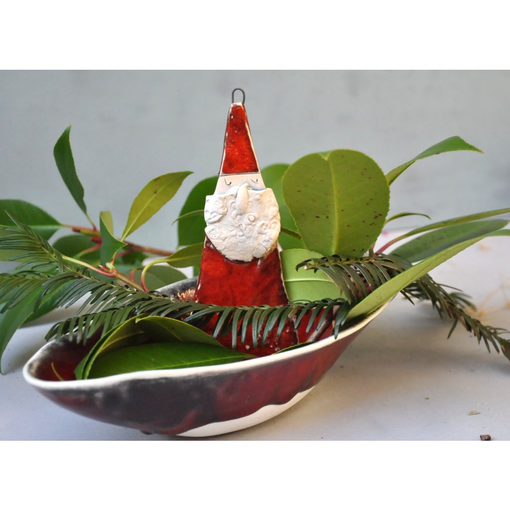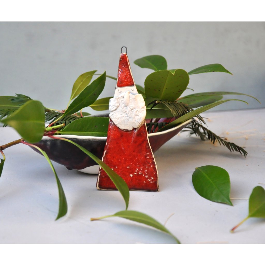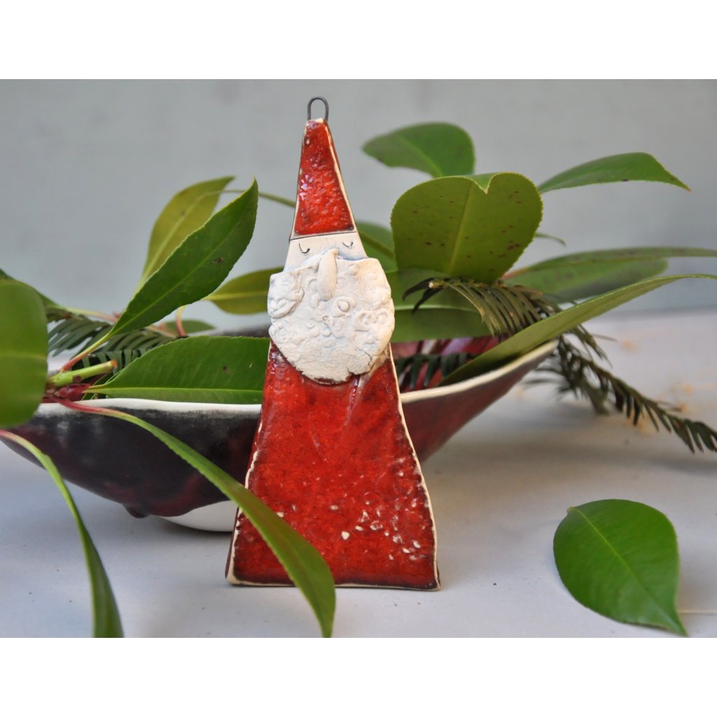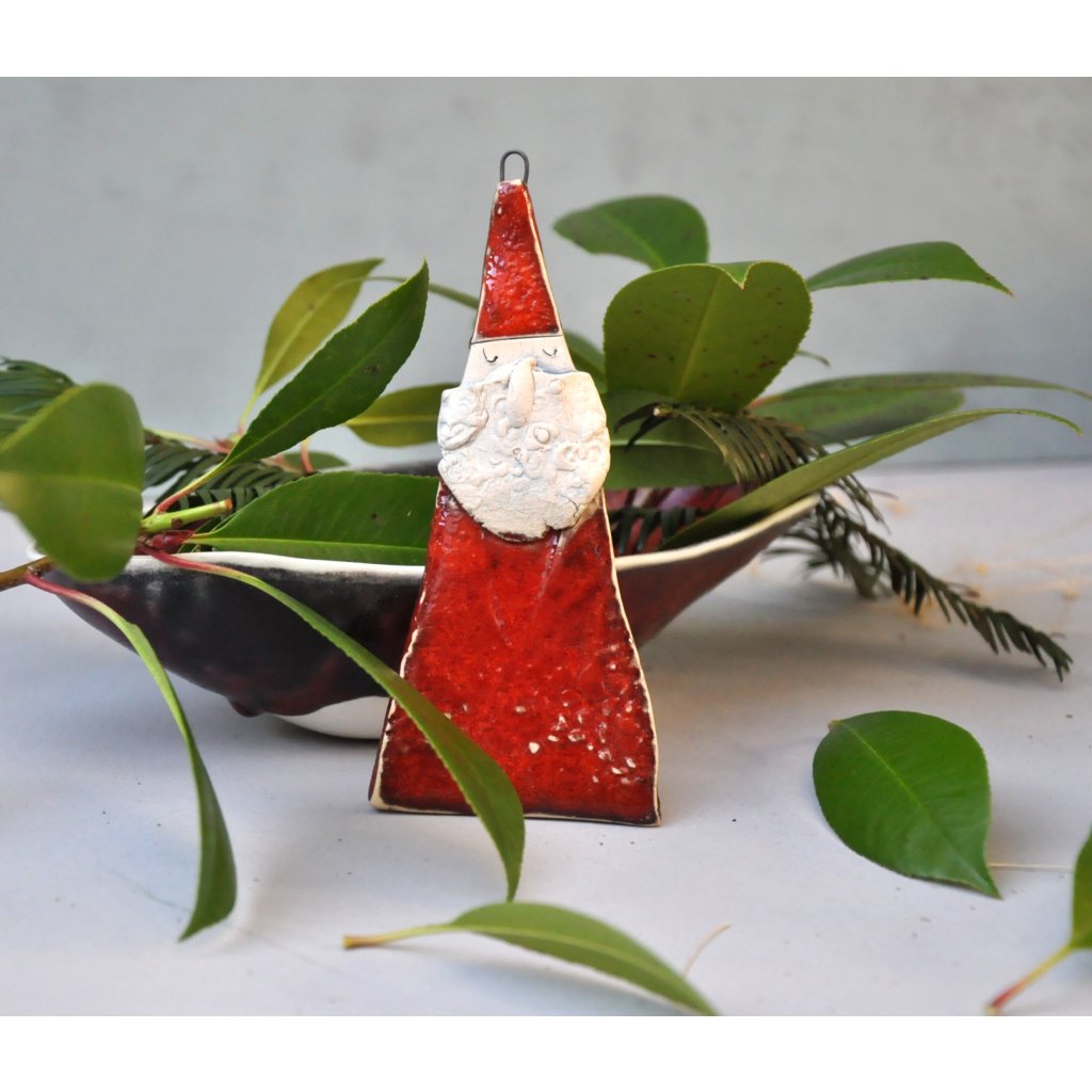 Náš veľký Mikulášik (L) v červenej farbe je ručne vyrábaná dekorácia, ktorá do vášho domova prináša očakávanie Vianoc, radosť a teplo domova. Vďaka kovovému háčiku ho môžete zavesiť na stenu, poličku alebo okno, kde prinesie čarovnú a nostalgickú atmosféru sviatkov.