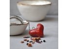 Štýlové sitko na čaj z nerezu s ručne robeným keramickým čajníkom a červeným srdiečkom. Malý detail, ktorý premení každý čaj na láskavý rituál.